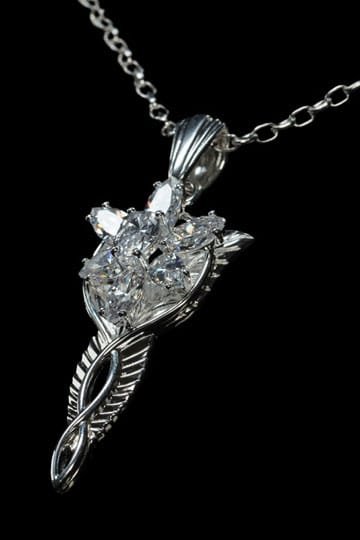 Inspirado en el collar que lleva Arwen, esta joya simboliza el amor eterno y la conexión entre mundos, convirtiéndose en uno de los objetos más reconocibles de la saga.