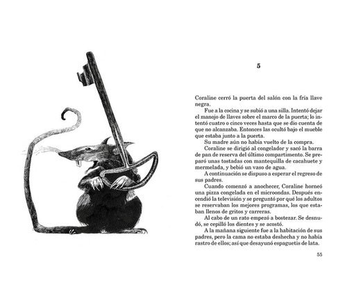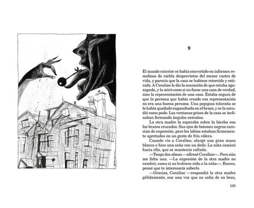 Coraline de Neil Gaiman. Novela de fantasía oscura y misterio.