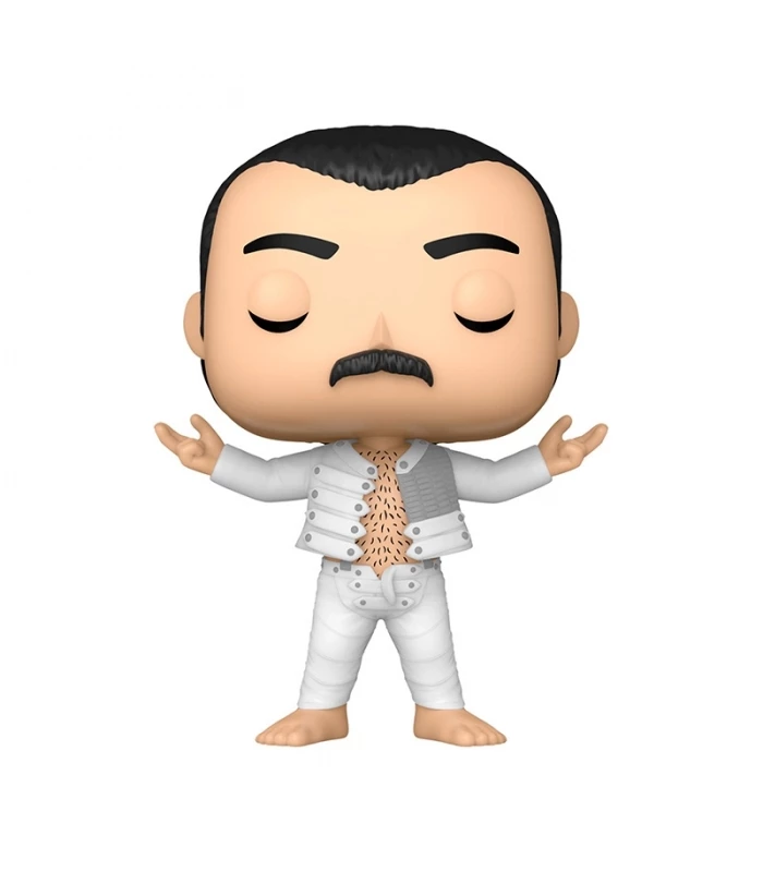 Inspirada en una de las etapas más icónicas del artista, esta figura captura la energía, carisma y presencia escénica de Freddie Mercury en el clásico estilo Funko POP! Rocks.