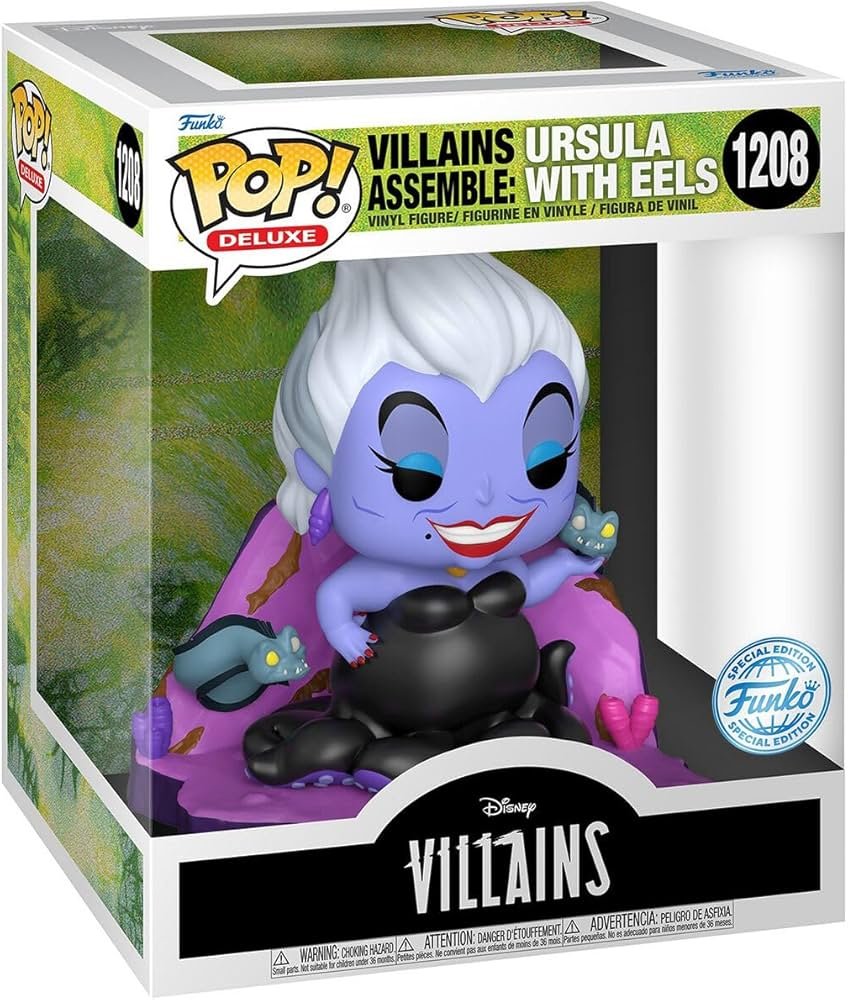 El Funko POP! Deluxe Ursula Edición Especial es una figura imprescindible para los seguidores de Disney Villains. Inspirada en la poderosa villana de La Sirenita, esta versión Deluxe destaca por su mayor tamaño y nivel de detalle, ofreciendo una presencia aún más imponente.