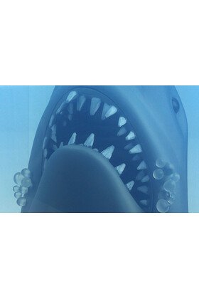 Basada en el legendario cartel de la película, esta figura recrea una de las imágenes más icónicas de la historia del cine: el tiburón emergiendo desde las profundidades con una composición visual que sigue impactando décadas después.