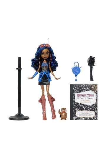La Monster High Collector Robecca Steam es una muñeca imprescindible para los seguidores de Monster High. Robecca es una estudiante con estética steampunk, conocida por su diseño mecánico, su personalidad dulce y su estilo lleno de engranajes y detalles metálicos.