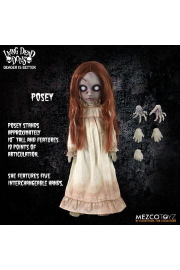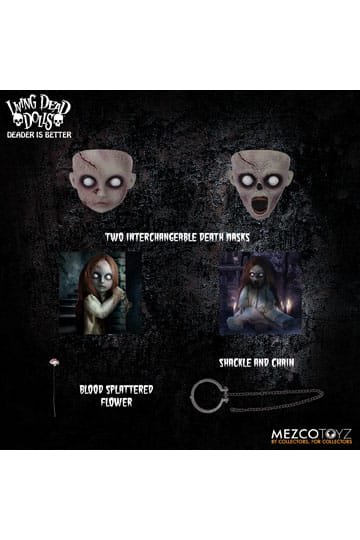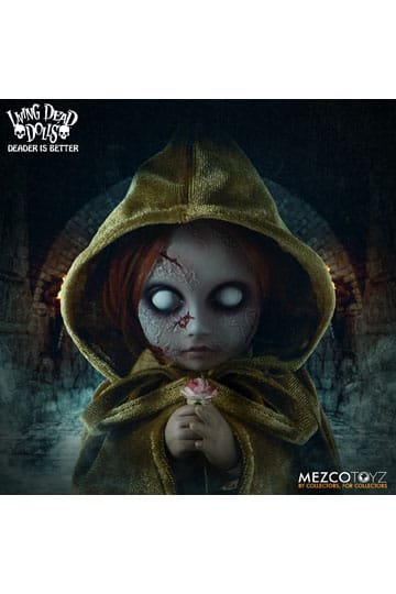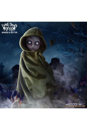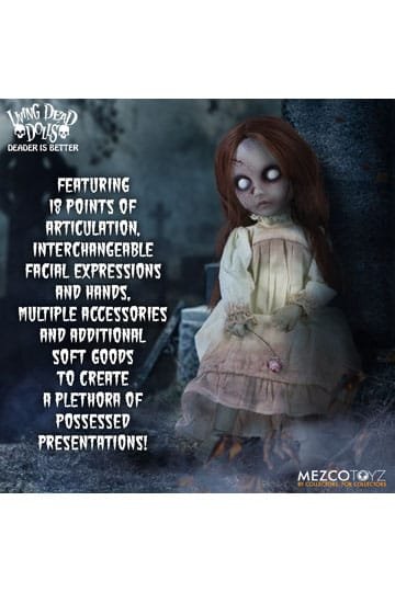 Con aproximadamente 25 cm de altura, es una pieza imprescindible para los amantes del horror, las muñecas coleccionables y el universo Living Dead Dolls. Perfecta para exhibir junto a otras figuras de terror o como protagonista absoluta de tu vitrina.