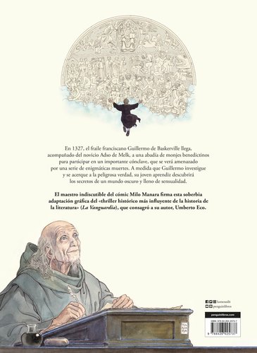 UN ACONTECIMIENTO EDITORIAL UMBERTO ECO Y MILO MANARA: DOS GENIOS UNIDOS EN UNA OBRA MAESTRA DE LA NOVELA GRÁFICA Número 1 en ventas en Italia En 1327, el fraile franciscano Guillermo de Baskerville llega, acompañado del novicio Adso de Melk, a una abadía de monjes benedictinos para participar en un importante cónclave, que se verá amenazado por una serie de enigmáticas muertes. A medida que Guillermo investigue y se acerque a la peligrosa verdad, su joven aprendiz descubrirá los secretos de un mundo oscuro y lleno de sensualidad.